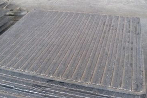 復合耐磨板是在普通鋼板或不銹鋼板表面堆焊復合一層具有高硬度、高耐磨性的高合金耐磨層。 復合耐磨板的合金耐磨層和基板之間是完全冶金結合。通過專用設備,采用自動焊接工藝,將高硬度自保護合金焊絲或合金粉均勻地焊接在基板上,復合層數一層至兩層以至多層,復合過程中由于合金收縮比不同,出現均勻橫向裂紋,這是耐磨鋼板的顯著特點。