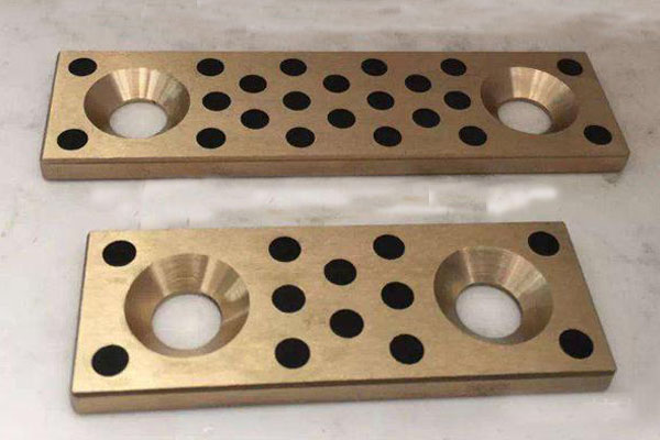 銅合金鑲嵌式固體潤滑復合滑板是以高強銅合金為基體,鑲嵌固體潤滑劑的一高性能固體潤滑產品。它突破了一般銅導板襯板依靠油膜潤滑的局限性。固體潤滑復合滑板在使用過程中,通過摩擦熱使固體潤滑劑與軸摩擦,形成油、粉末并存潤滑的優異條件,既保護軸不磨損,又使固體潤滑特性永恒。